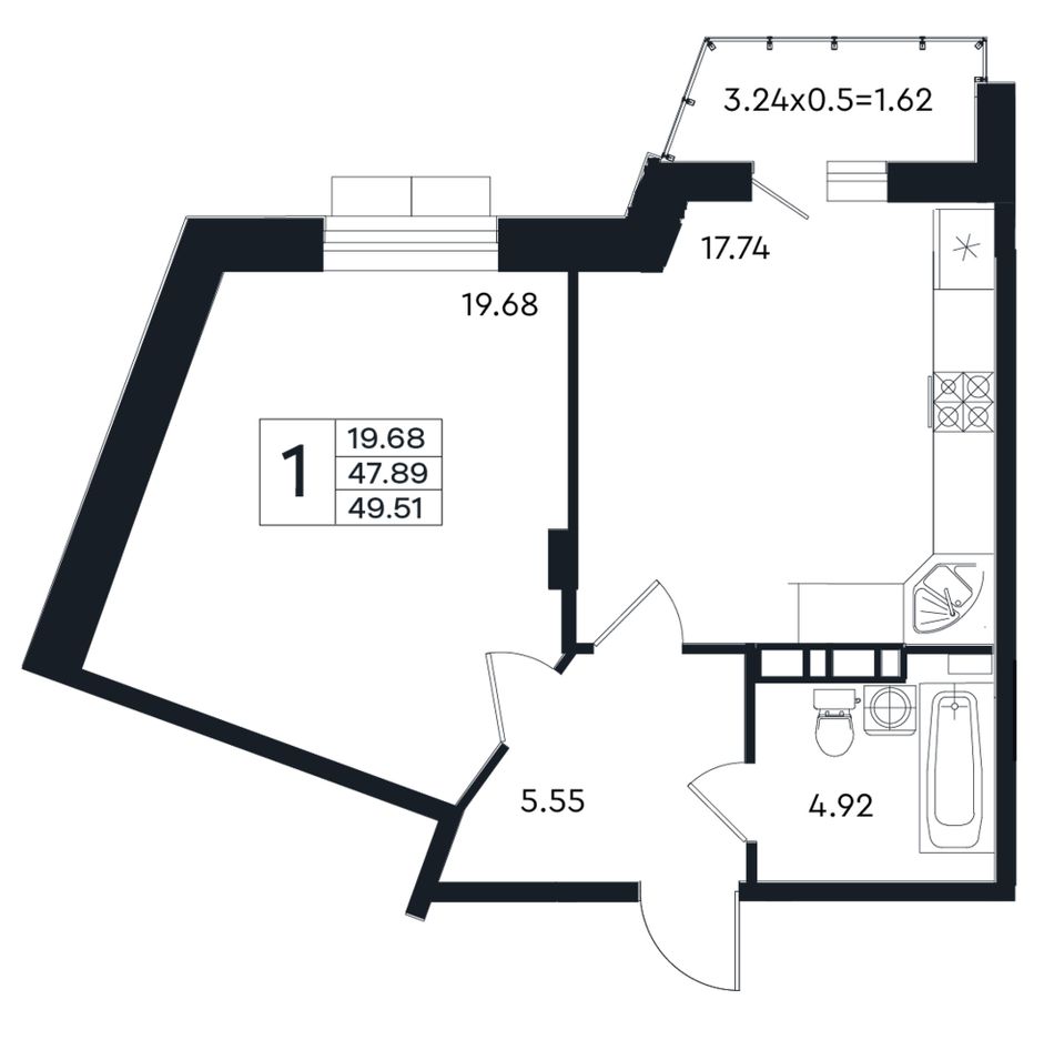 1-комнатная — 49,51 м² 9/12 эт. в ЭНДЕМИК