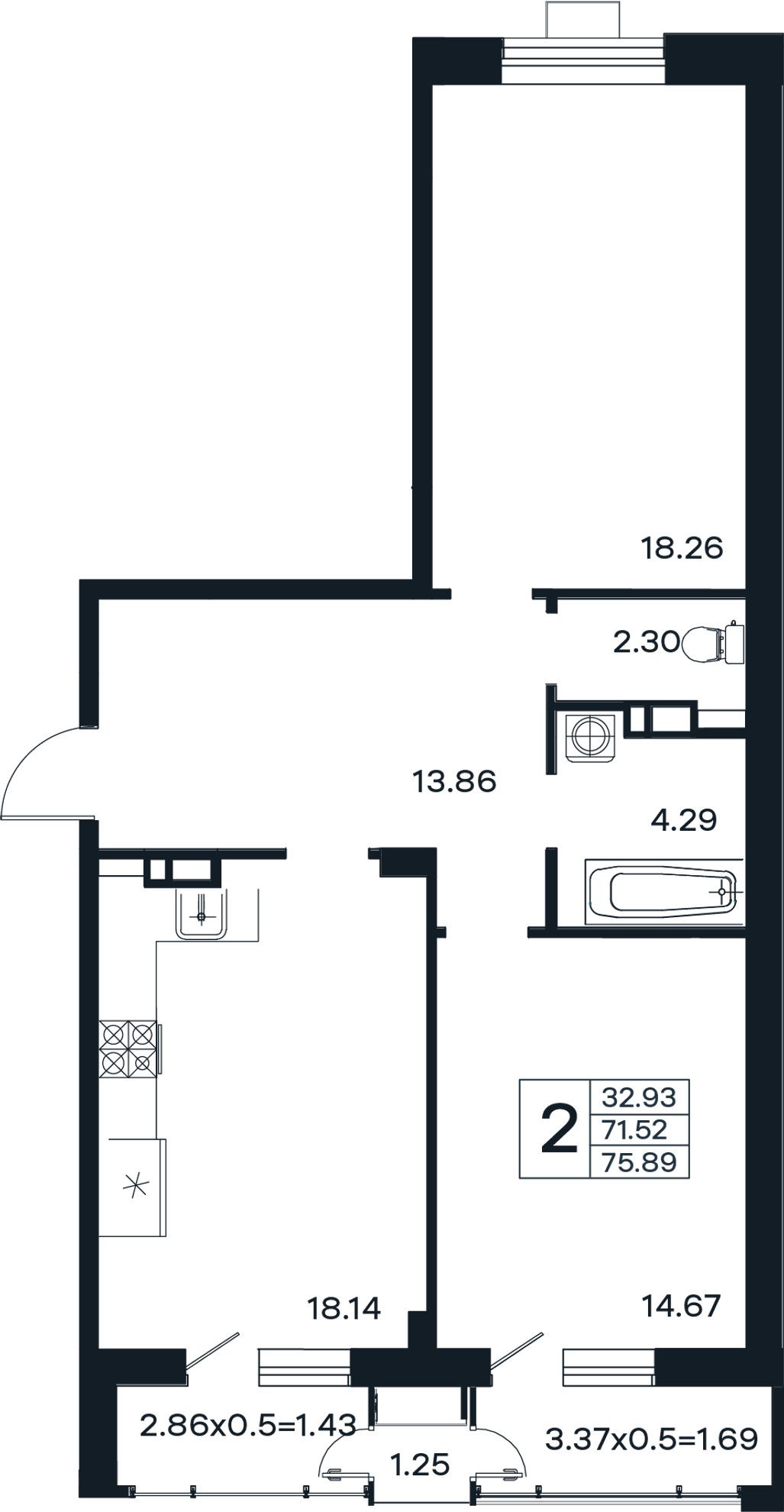 2-комнатная — 75,89 м² 4/12 эт. в ЭНДЕМИК