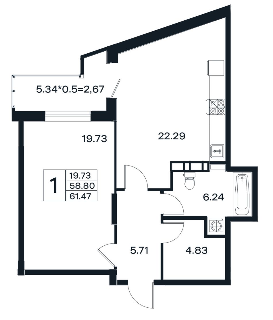 1-комнатная — 61,47 м² 4/12 эт. в ЭНДЕМИК