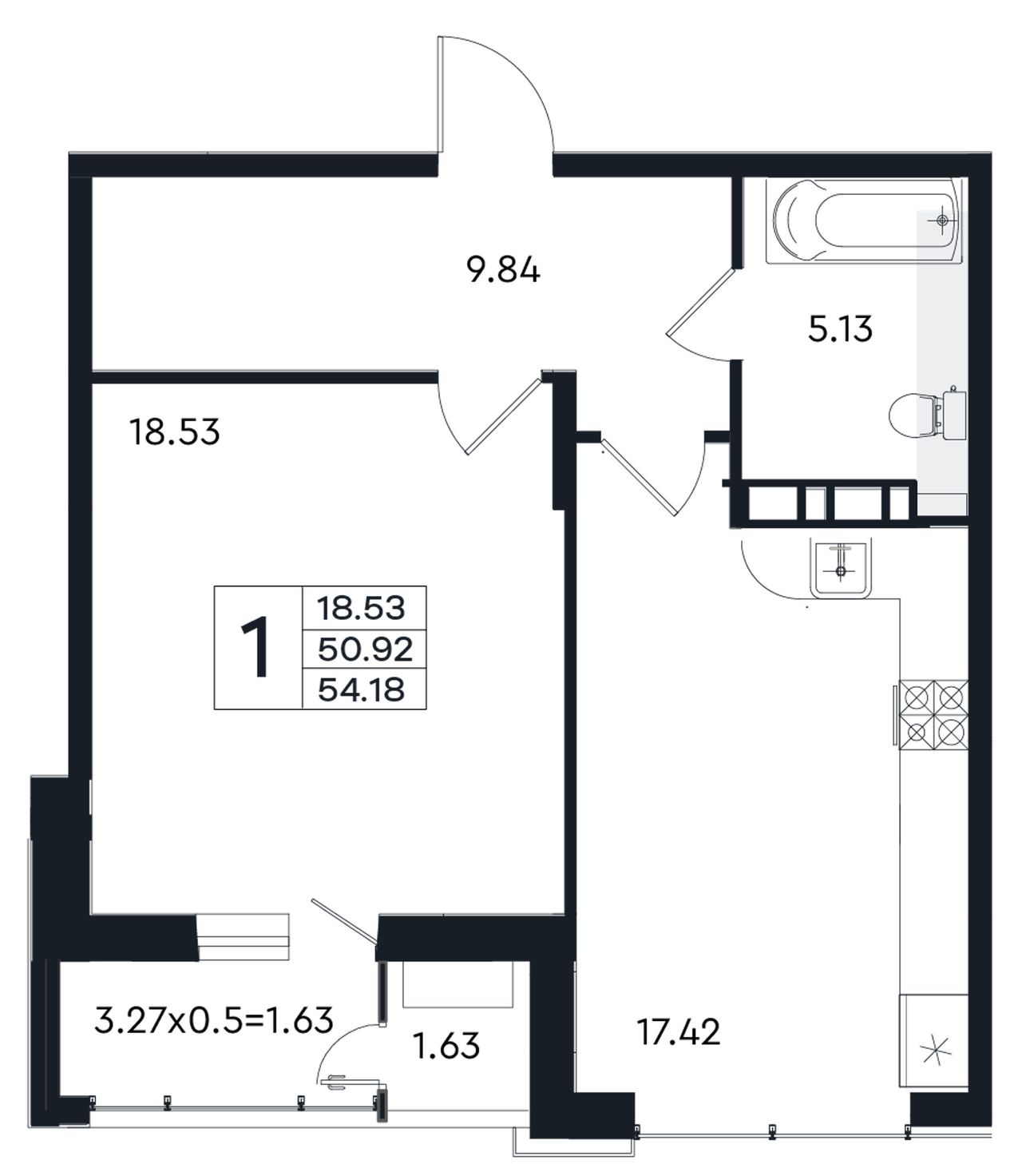 1-комнатная — 54,18 м² 4/12 эт. в ЭНДЕМИК