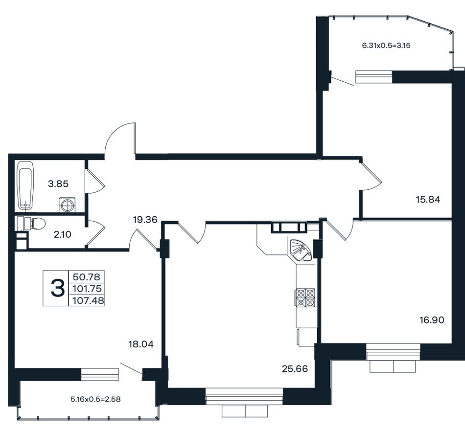 3-комнатная — 107,48 м² 3/12 эт. в ЭНДЕМИК