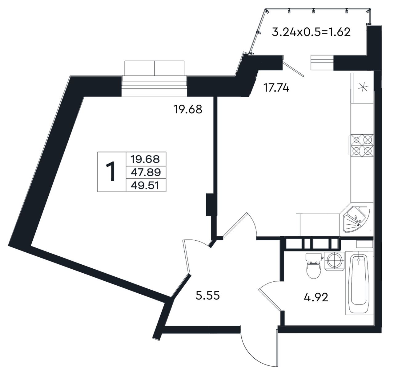 1-комнатная — 49,51 м² 3/12 эт. в ЭНДЕМИК
