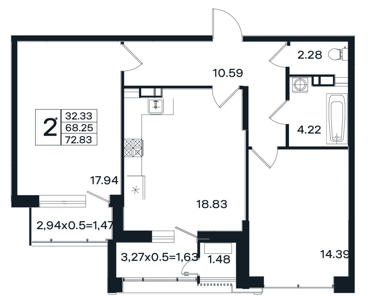 2-комнатная — 72,83 м² 2/12 эт. в ЭНДЕМИК