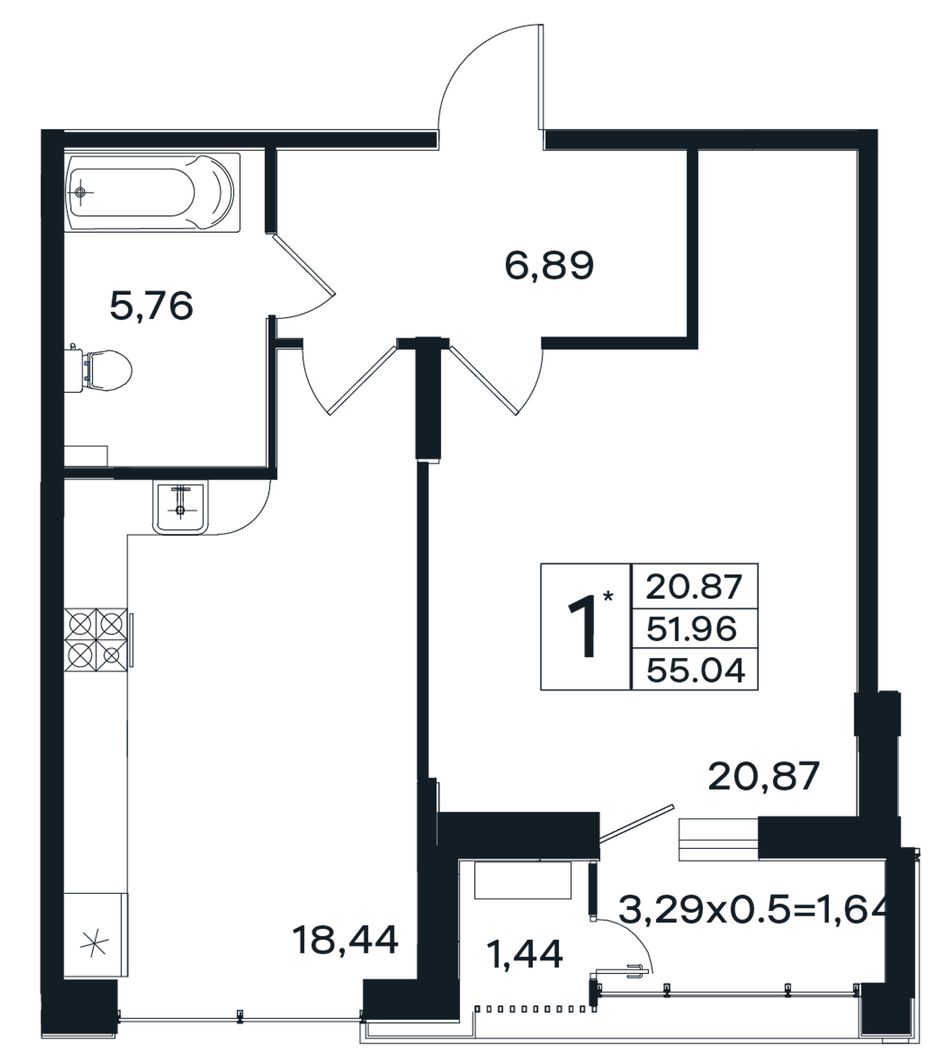 1-комнатная — 55,04 м² 1/12 эт. в ЭНДЕМИК