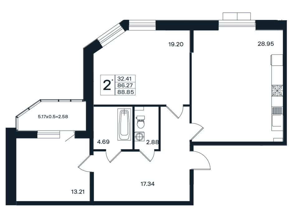 Общая площадь88,85 м²