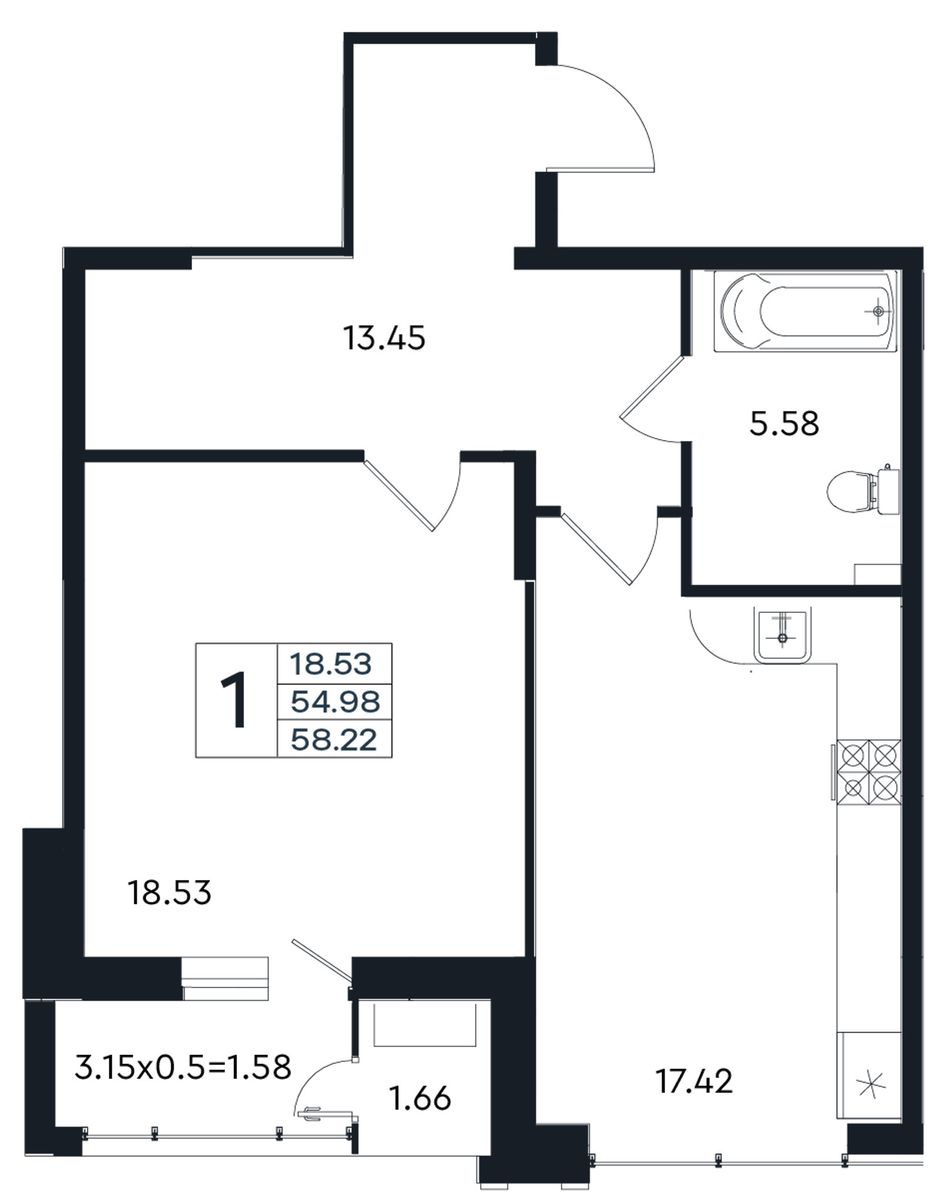 Общая площадь58,22 м²