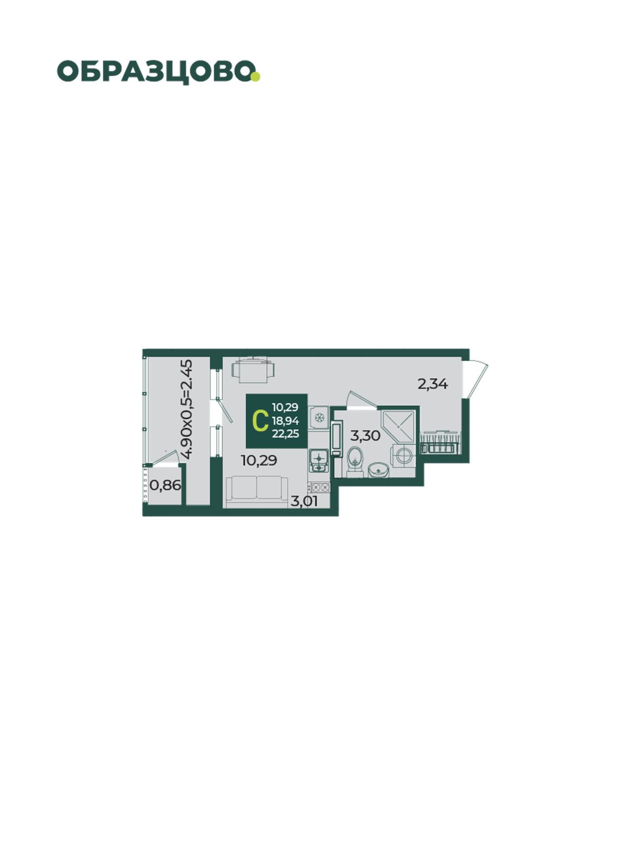 Студия — 22,25 м² 17/18 эт. в Образцово