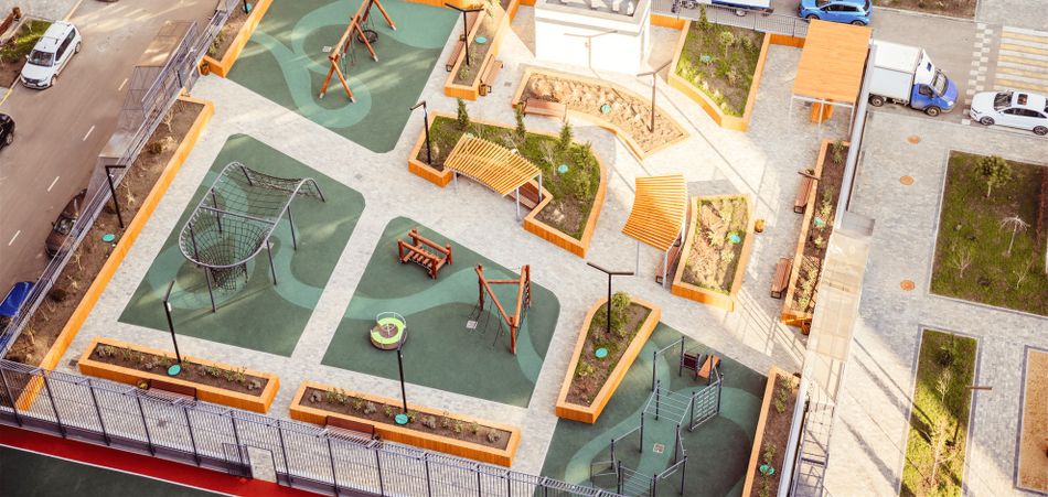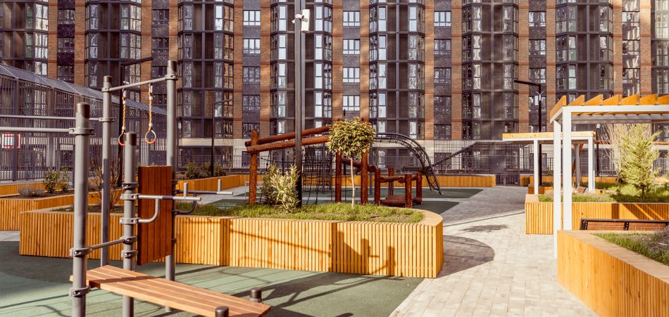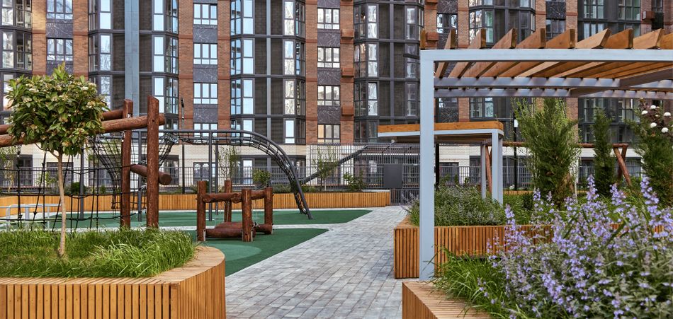 Жилой комплекс с развитой инфраструктурой - 4 детских садика, школа, собственная поликлиника, торговый кластер, прогулочные зоны и большой сквер сквер «Флагманский».