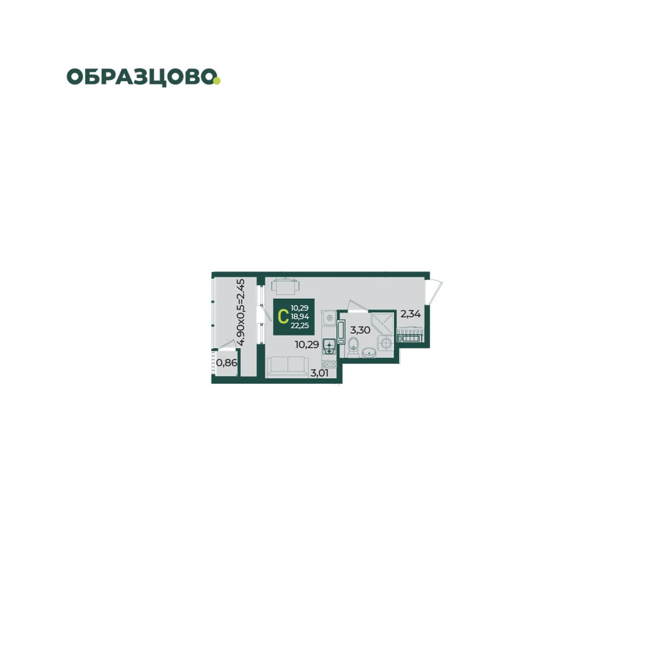 Общая площадь22,25 м²