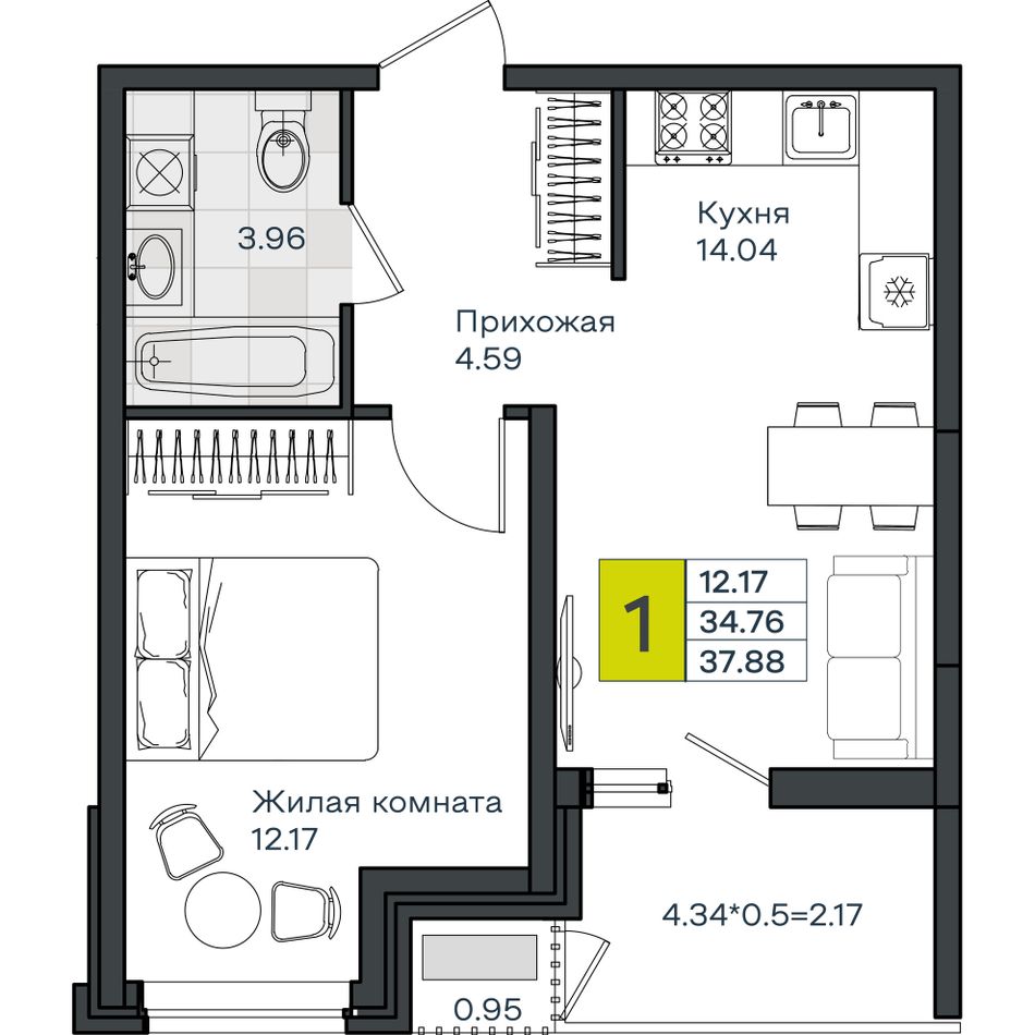 Общая площадь37,88 м²