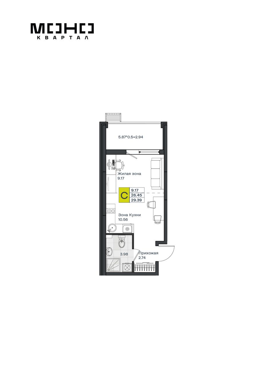 Студия — 29,39 м² 2/8 эт. в МОНО Квартал