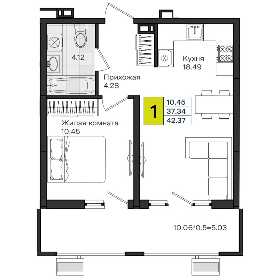 Общая площадь42,37 м²