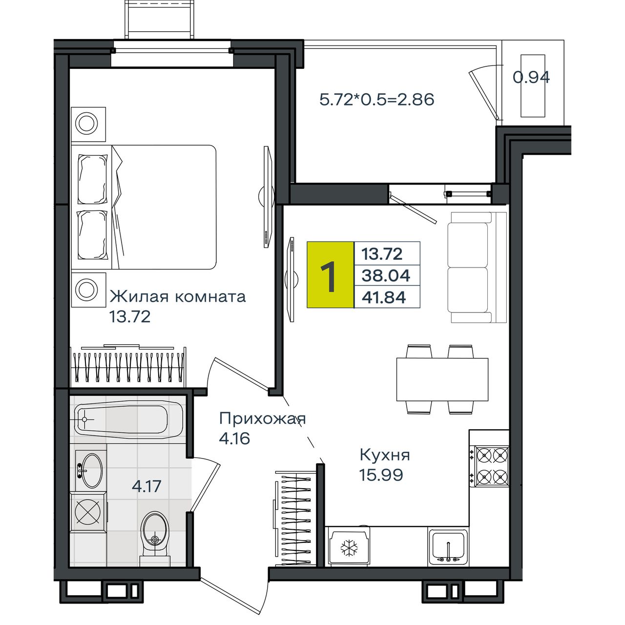 Общая площадь41,84 м²