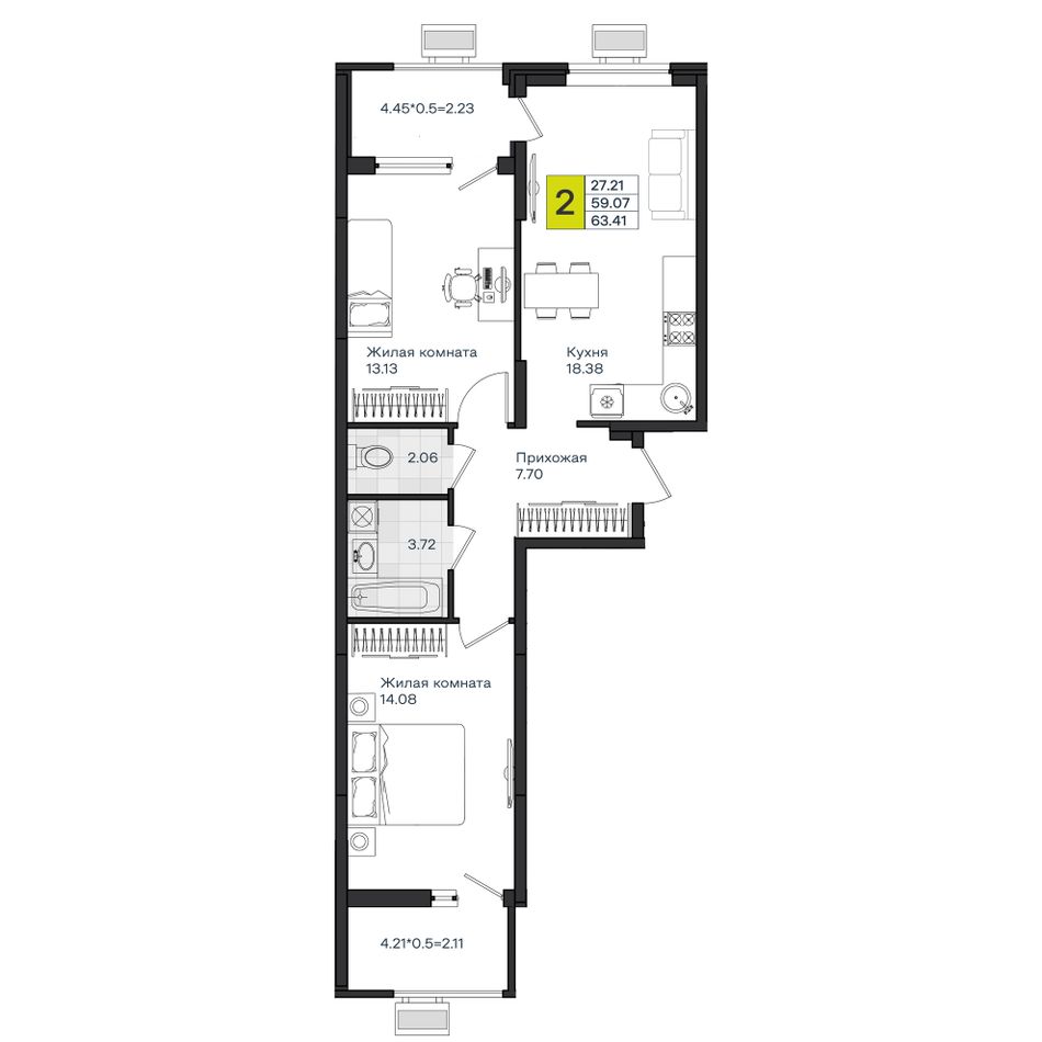 Общая площадь63,41 м²