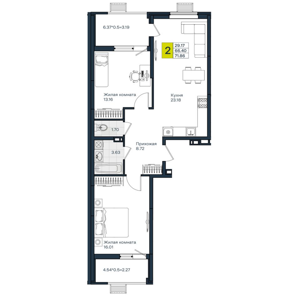 Общая площадь71,86 м²