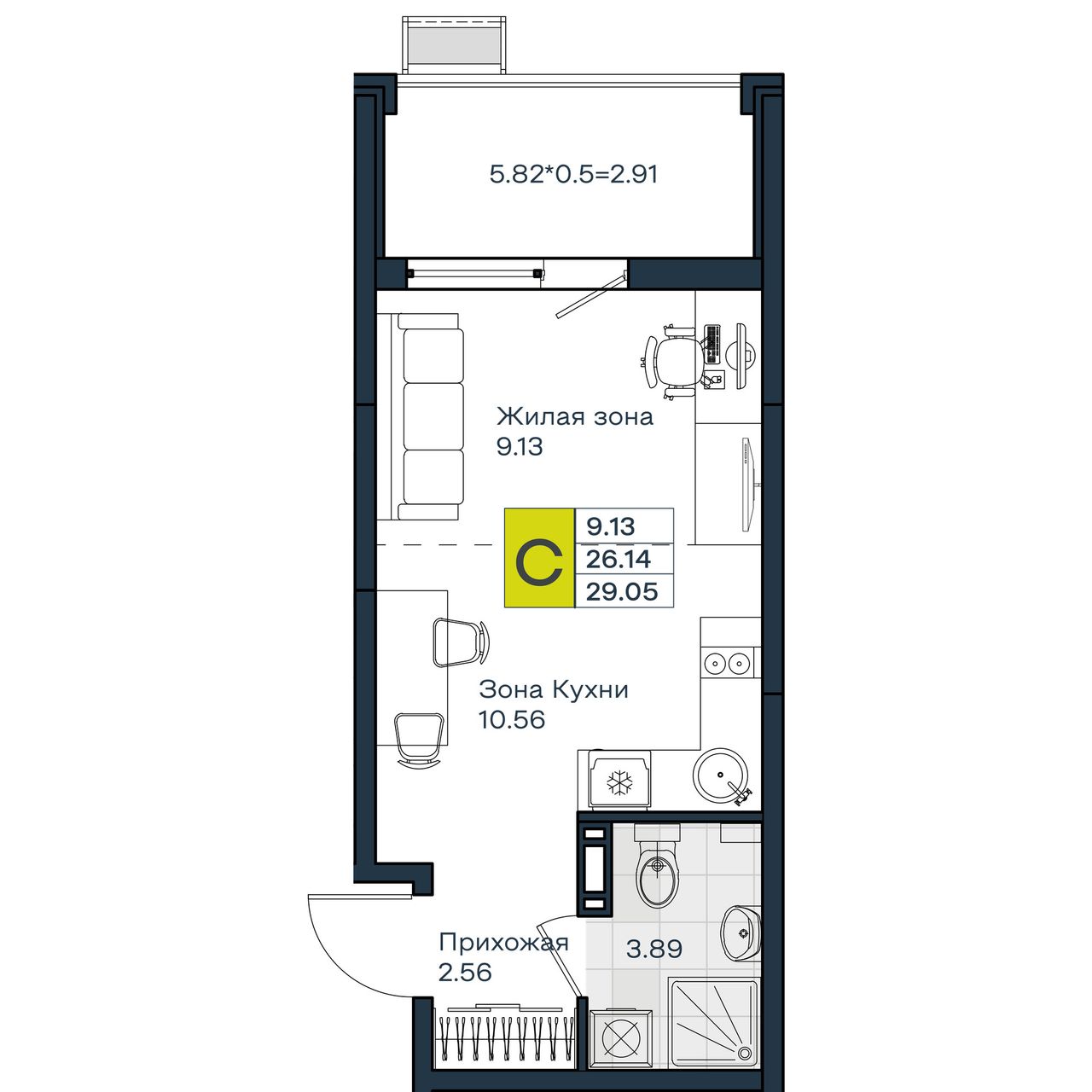 Общая площадь29,05 м²