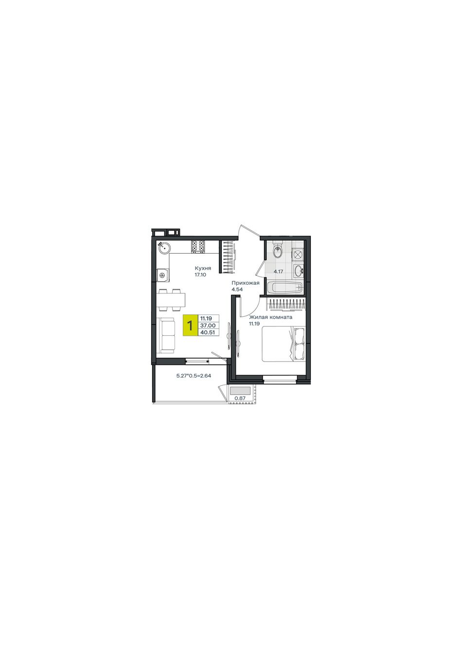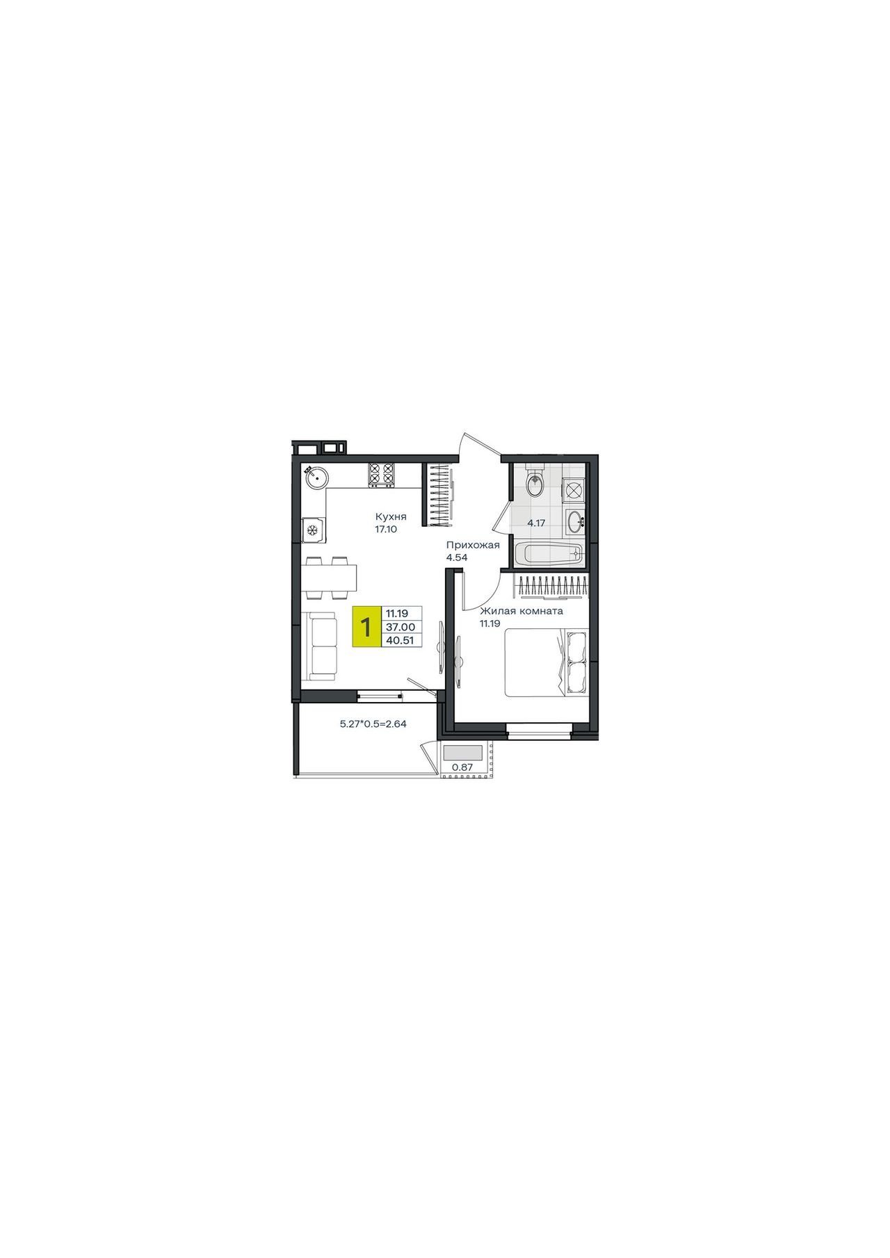 1-комнатная — 40,51 м² 7/8 эт. в МОНО Квартал