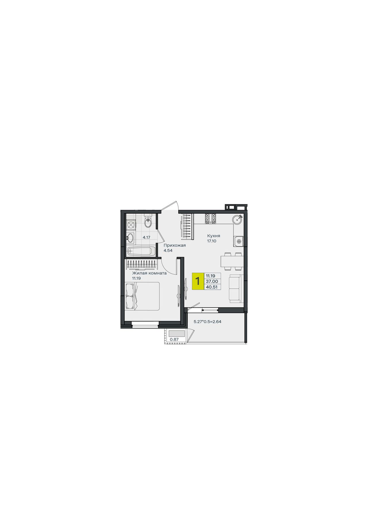 Общая площадь40,51 м²