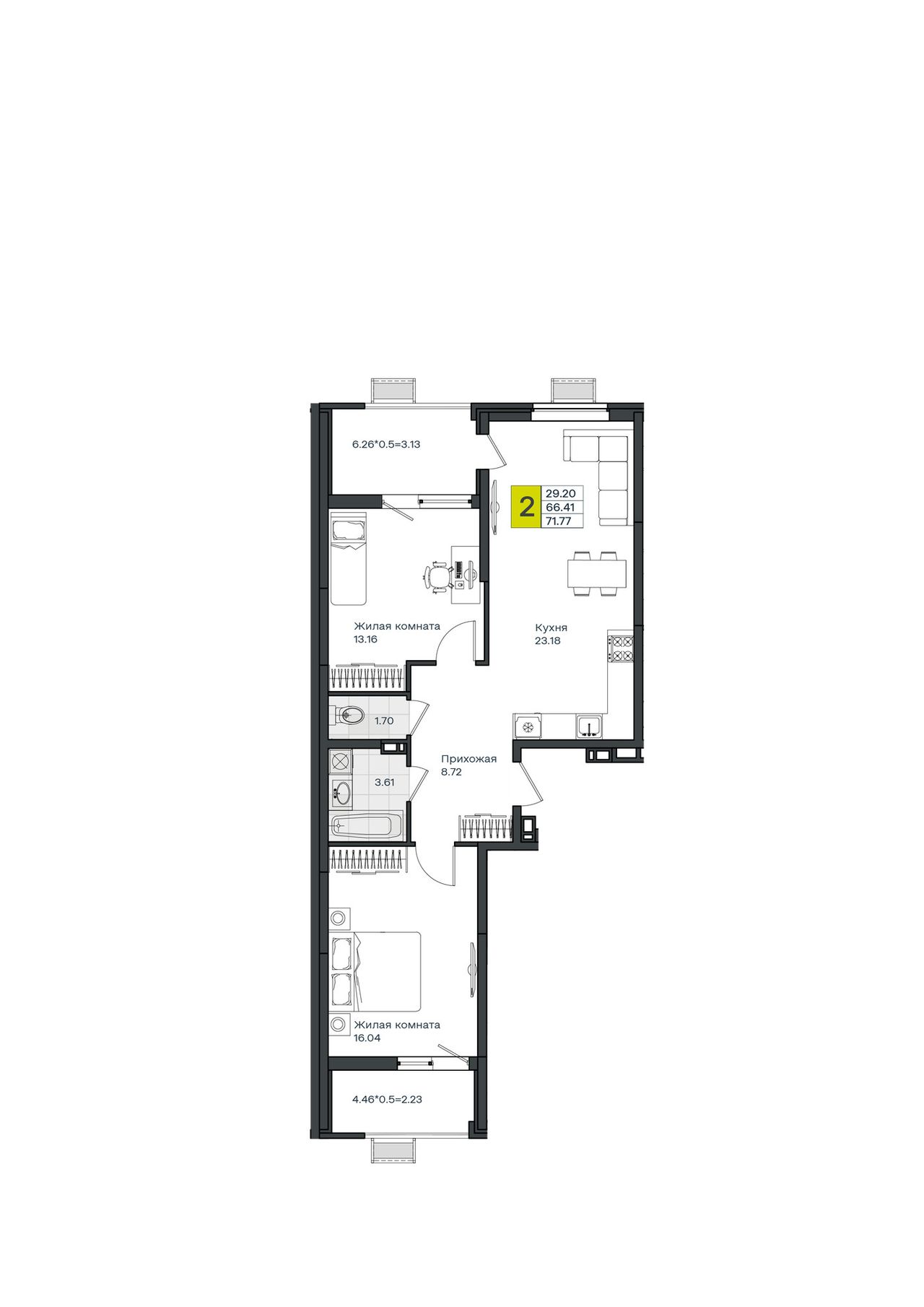 | 2-комн. | 66 м² | 7,9 млн ₽ |