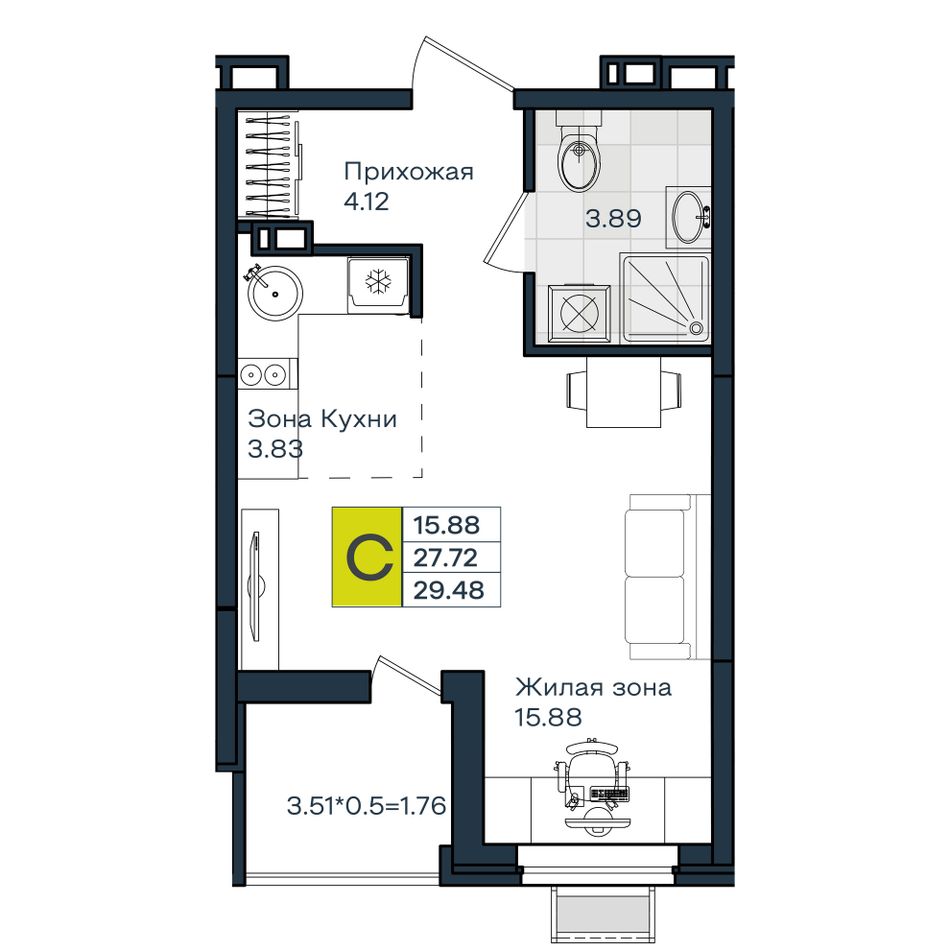 Общая площадь29,48 м²