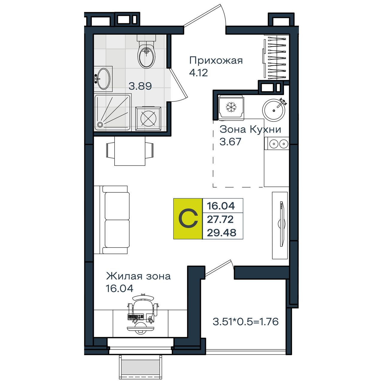 Общая площадь29,48 м²