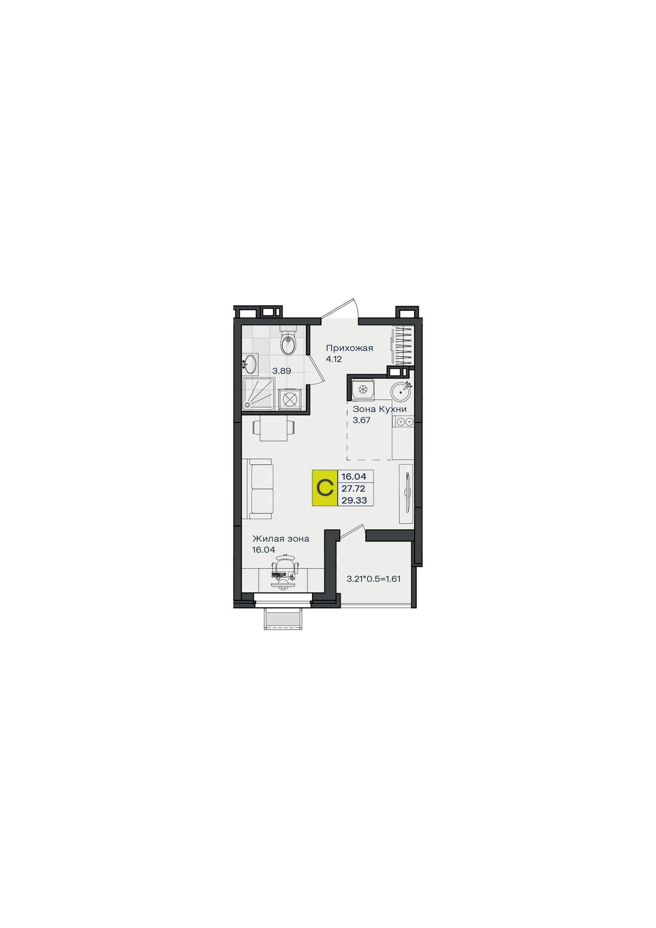 | Студия | 29 - 30 м² | 4,2 - 4,4 млн ₽ |