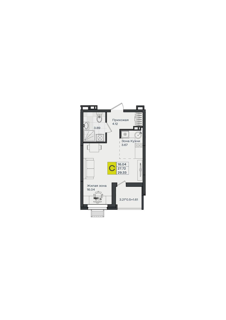 | Студия | 22 - 27 м² | 3,9 - 5,2 млн ₽ |