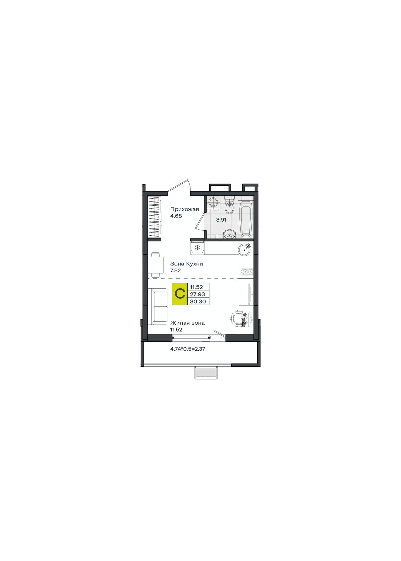 | Студия | 22 - 27 м² | 3,9 - 5,2 млн ₽ |