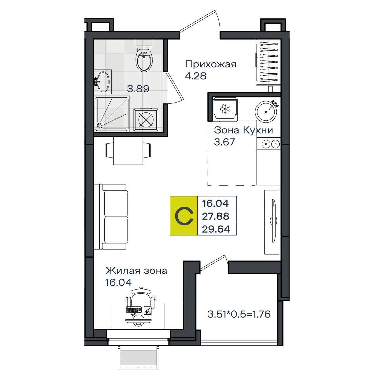 Студия — 29,64 м² 2/8 эт. в МОНО Квартал