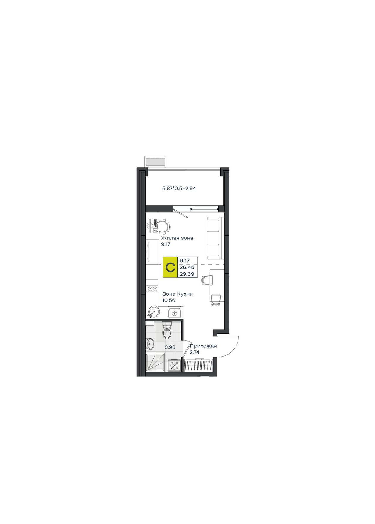 | Студия | 29 - 30 м² | 4,2 - 4,4 млн ₽ |