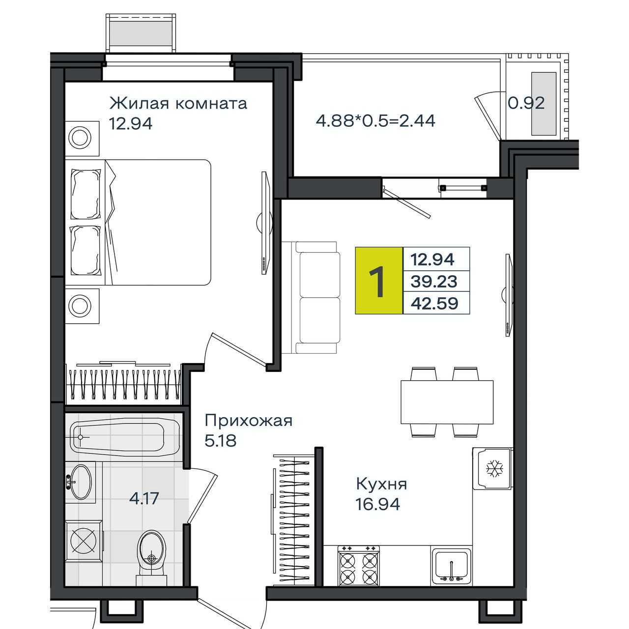 Жилая площадь12,94 м²