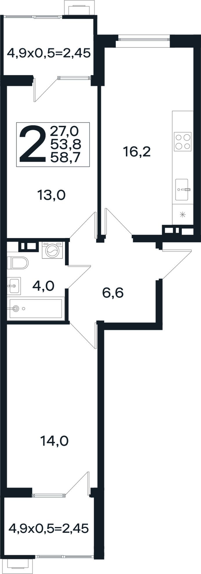 | 2-комн. | 66 м² | 7,9 млн ₽ |