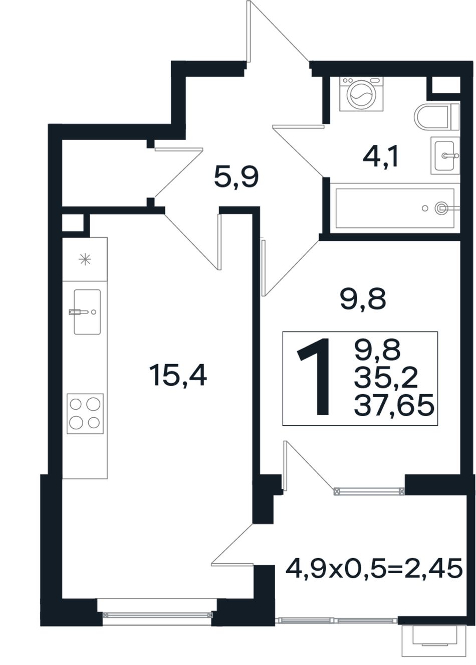 1-комнатная — 37,65 м² 1/4 эт. в Новая Елизаветка