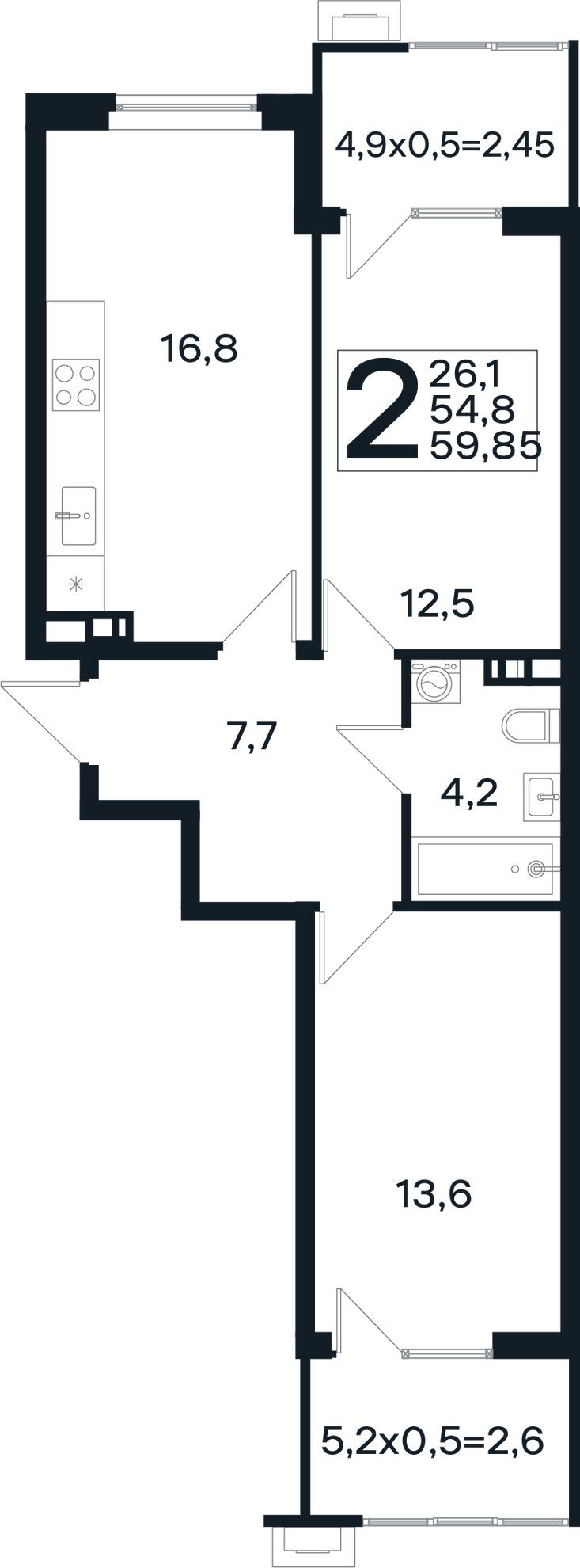 Общая площадь59,85 м²