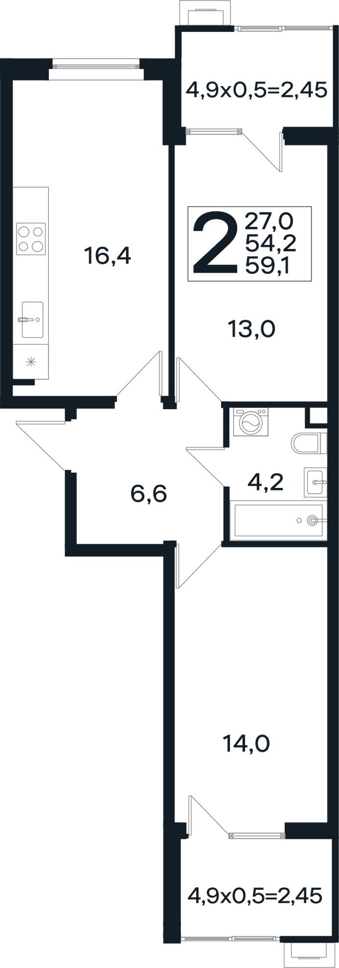 Общая площадь59,1 м²