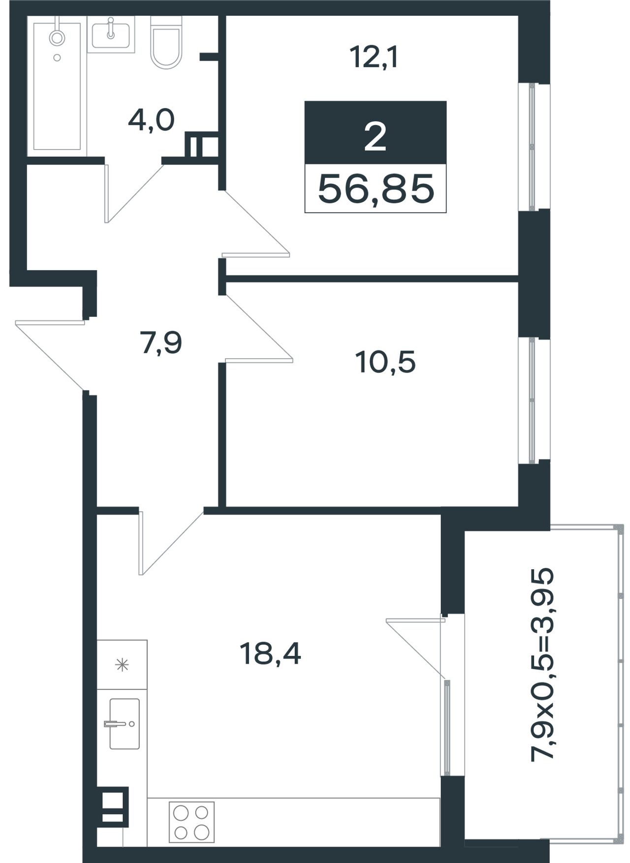 | 2-комн. | 56 - 60 м² | 7,7 - 10,4 млн ₽ |