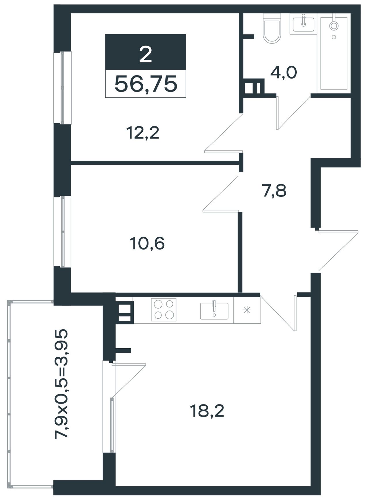 Общая площадь56,75 м²