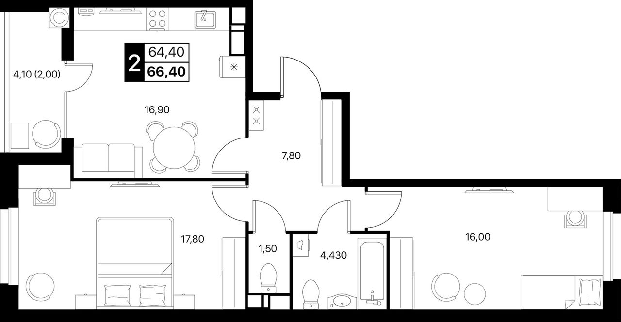 Общая площадь66,4 м²