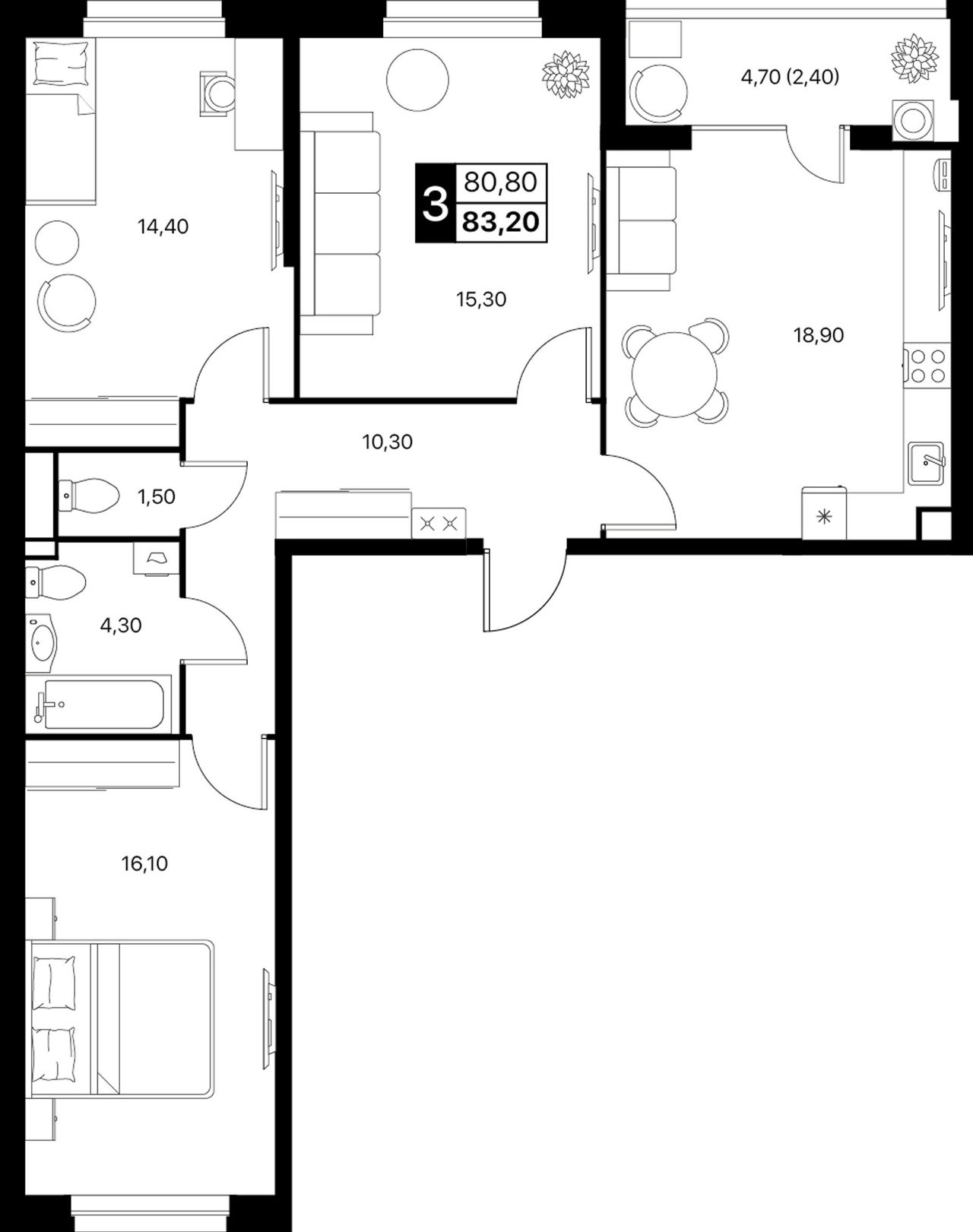 Общая площадь83,2 м²