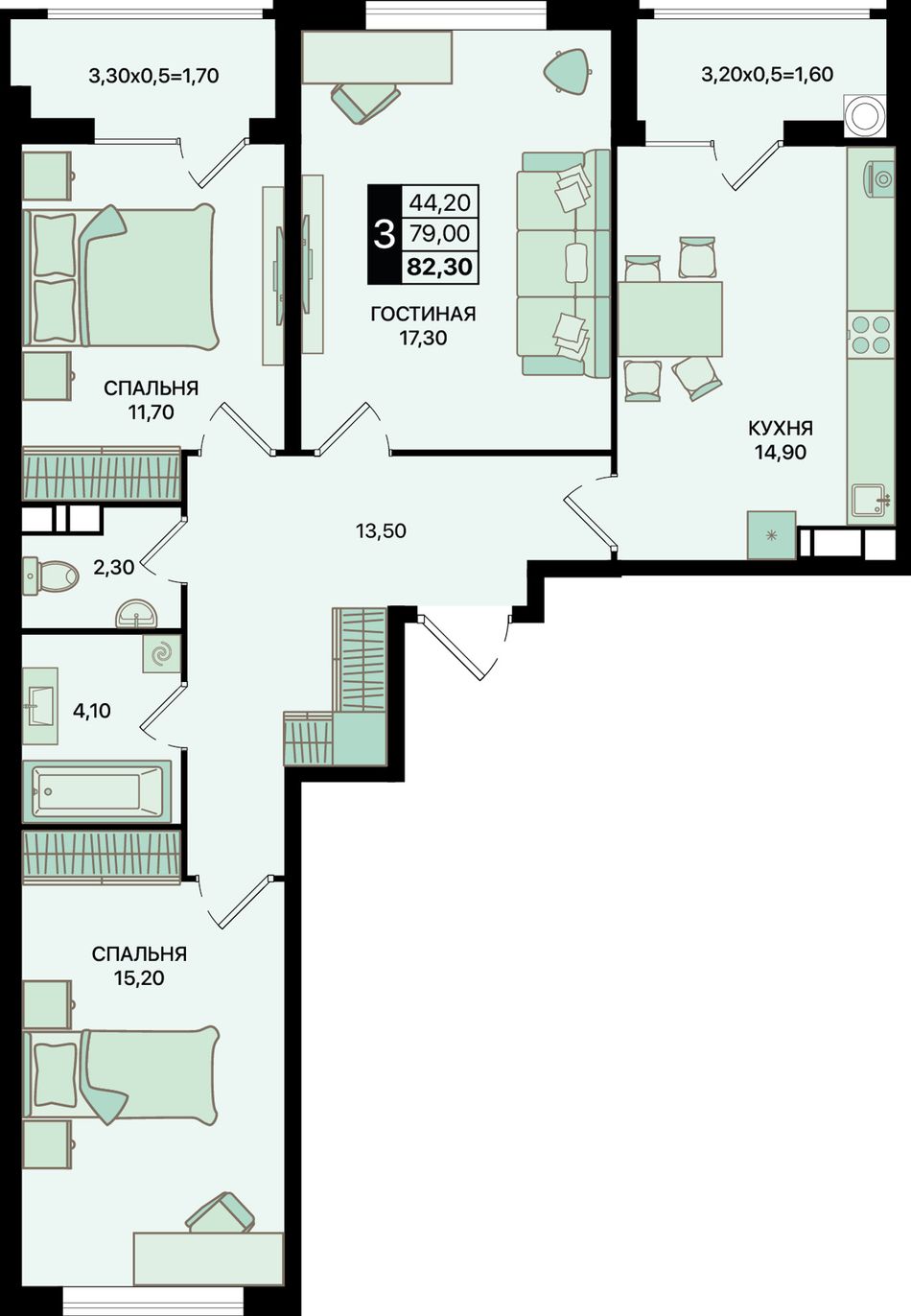 Общая площадь82,3 м²