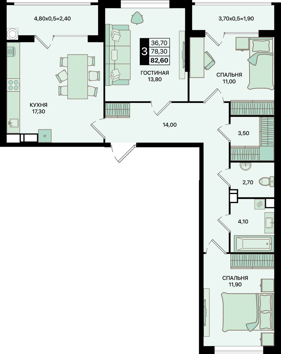 Общая площадь82,6 м²
