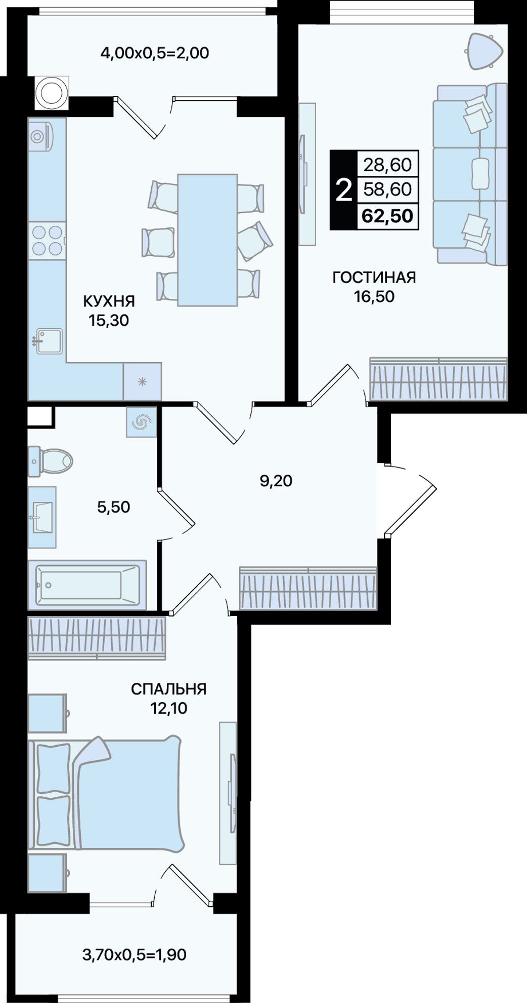 Общая площадь62,5 м²