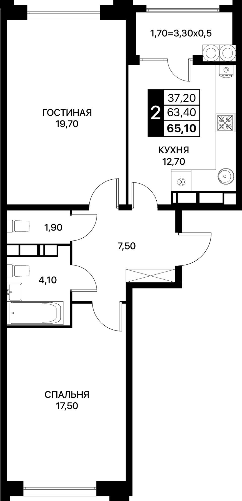 2-комн. | 51 - 65 м² | 7,1 - 9,1 млн ₽ |