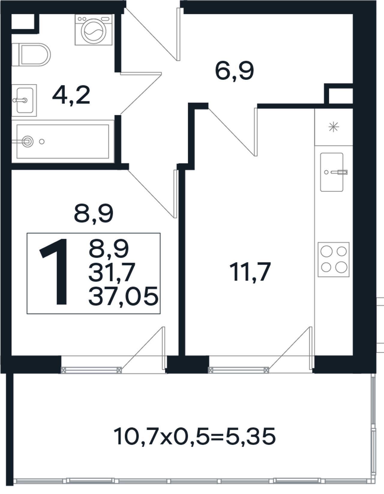 Общая площадь37,05 м²