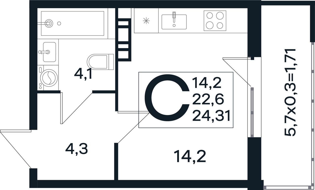 Студия | 24 - 27 м² | 3,9 - 4,3 млн ₽ |