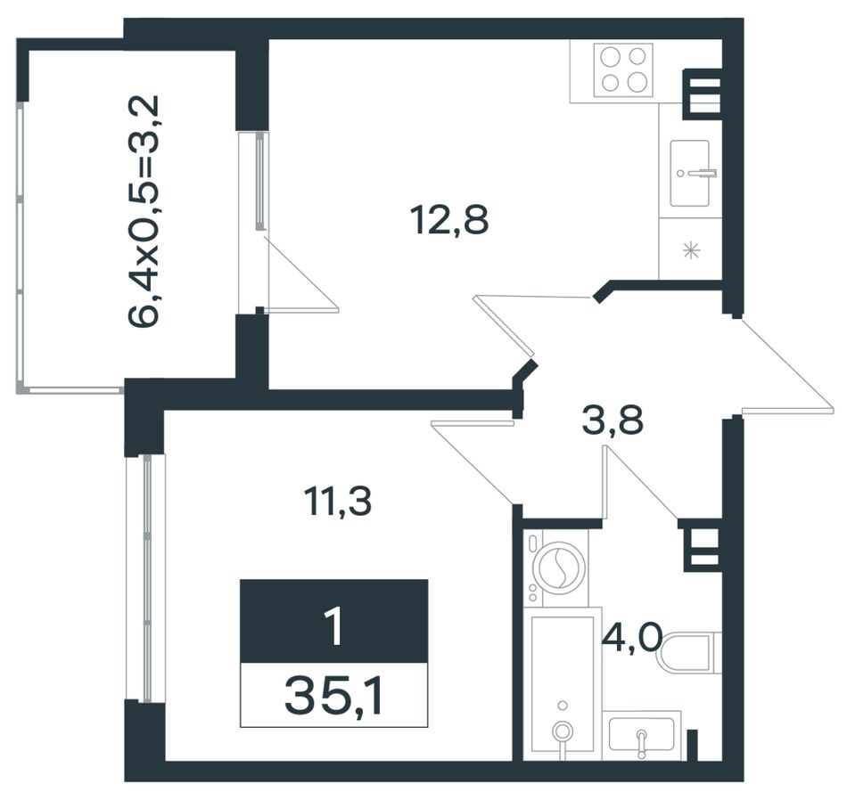 Общая площадь35,1 м²