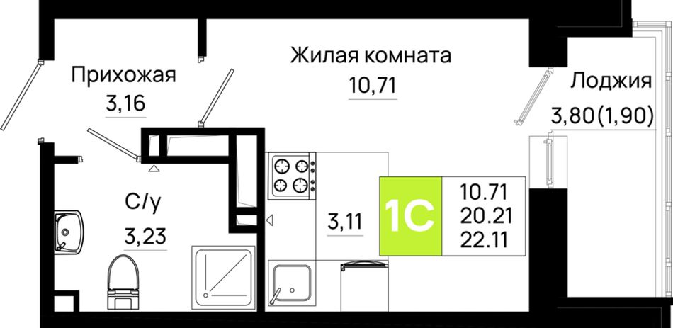 Общая площадь22,11 м²
