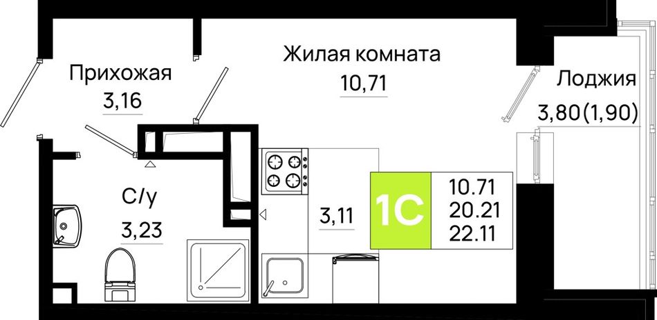 Студия — 22,11 м² 4/25 эт. в Октябрь Парк