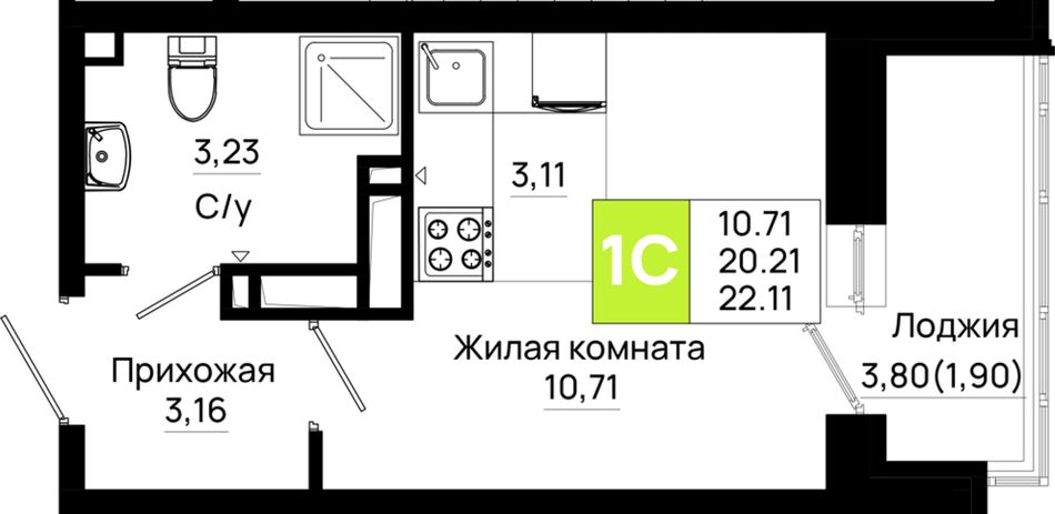 | Студия | 19 - 23 м² | 3,3 - 4 млн ₽ |