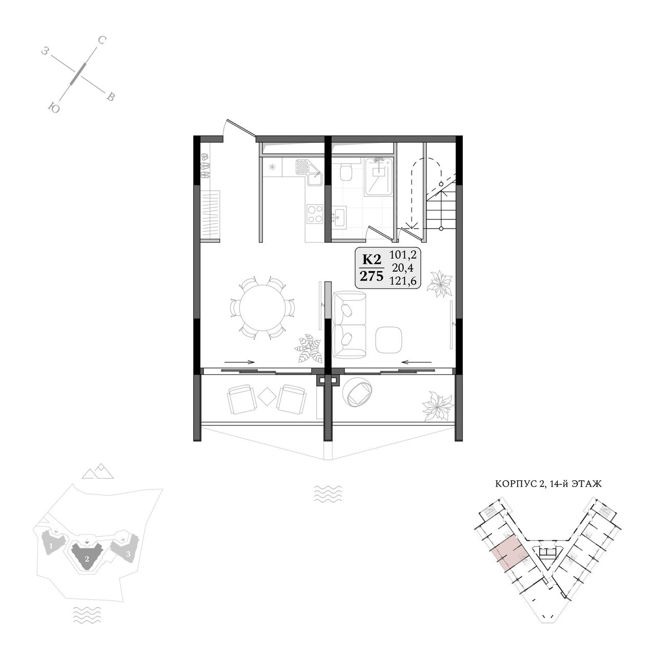 1-комнатная — 121,6 м² 14/14 эт. в LETTO (Летто)